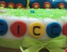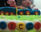 Questa è la torta decorata in pasta di zucchero che ho preparato per il compleanno del mio nipotino Francesco. Anche lui è un fan di Peppa Pig e del suo fratellino George 🙂 Dopo aver preparato la base con la Mud Cake e aver ricoperto la torta con la pasta di zucchero ho decorato con prato, fiorellini, una locomotiva e gli immancabili personaggi di Peppa Pig e George.